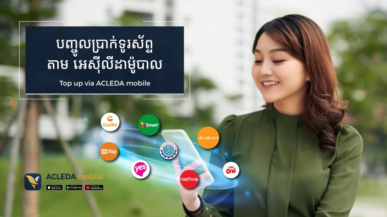 សូមមើលវីដេអូខាងក្រោមនេះអំពីរបៀបបញ្ចូលទឹកប្រាក់ទូរស័ព្ទដៃតាមអេស៊ីលីដាម៉ូបាល៖